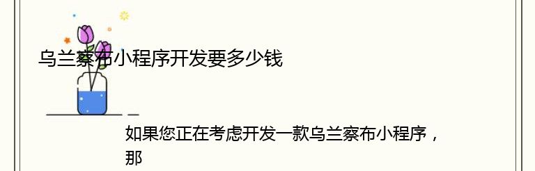 总的来说,乌兰察布小程序开发的成本因许多因素而异。如果您需要一个简单的小程序,那么成本可能会在几千元左右。但是,如果您需要一个复杂的小程序,那么成本可能会在数万元以上。因此,您需要根据您的需求和预算来决定开发小程序的成本。