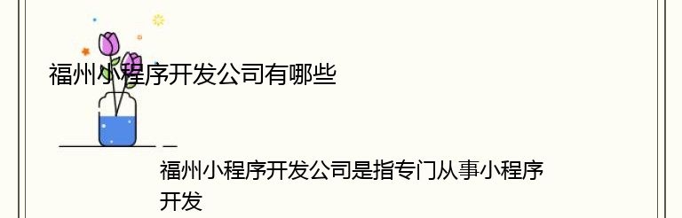 福州小程序开发公司有哪些呢?以下是一些比较知名的公司: